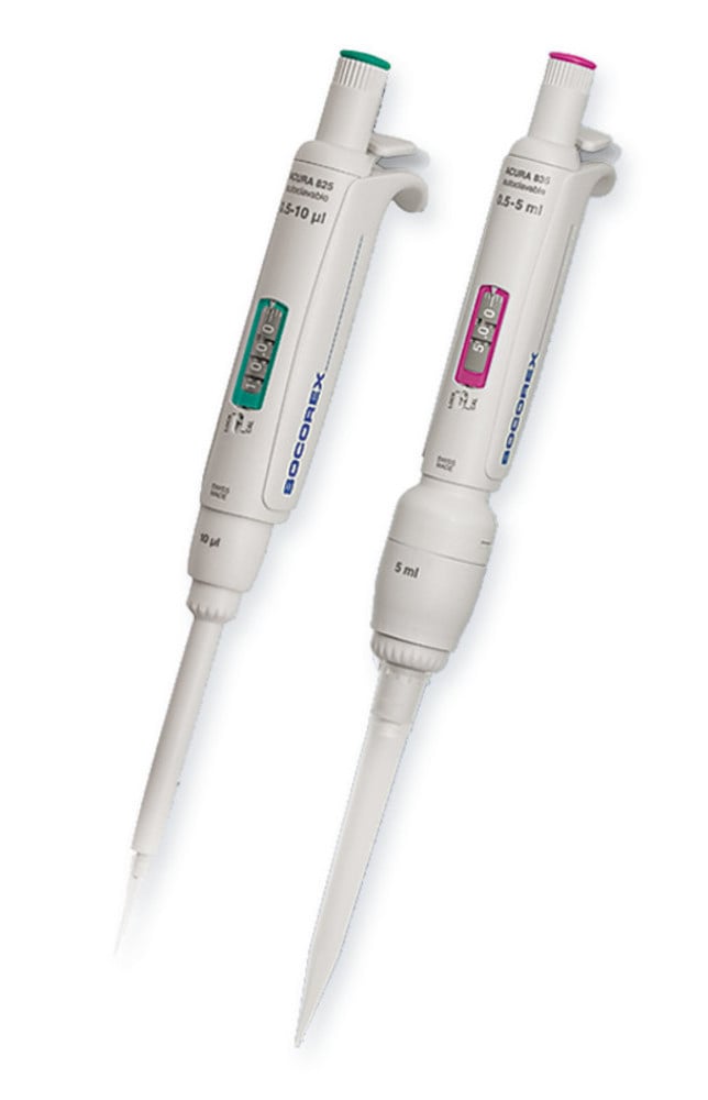 Mikro-/Makroliterpipetten Acura® 825 variabel, von Socorex, 2 - 20 μl inkl. Prüfbescheinigung Acura® 825/835 variabel