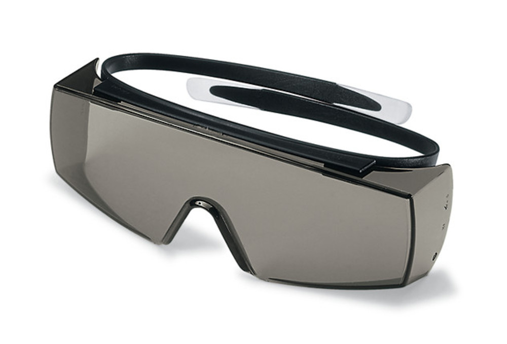 Safety glasses super OTG, black, grey anti-fog lenses, con. EN 166/170/172 Conf. EN 166, EN 170 and EN 172 (only nr. KX41.1). Can be worn as over glasses over most corrective glasses. Extremely scratch-resistant PC lenses on both sides Spectacle legs without hinge Flexible soft ends of the eyeglass legs Weight 57 g